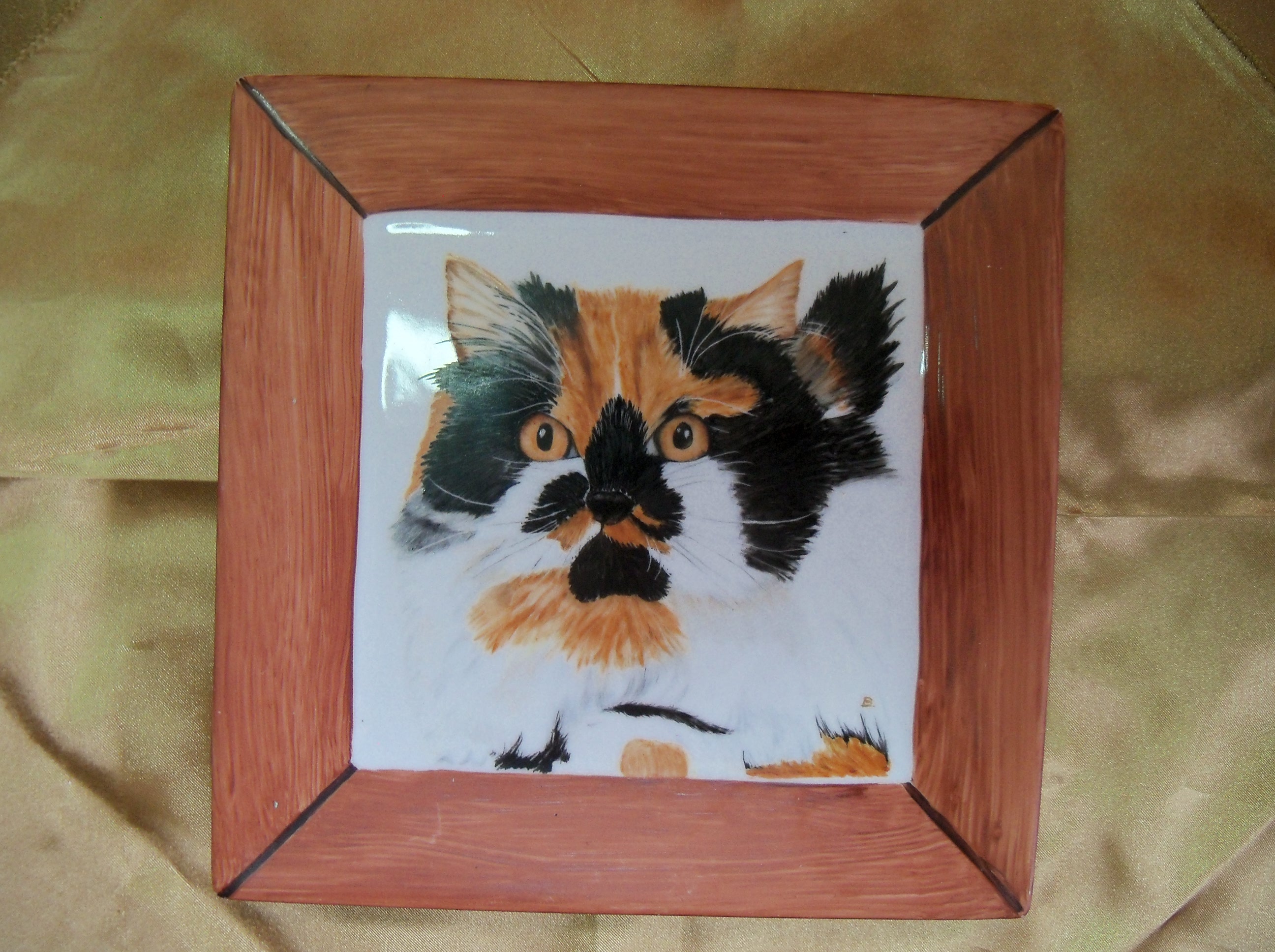 - Assiette porcelaine carrée avec motif prunes noires – motif peint entièrement à la main